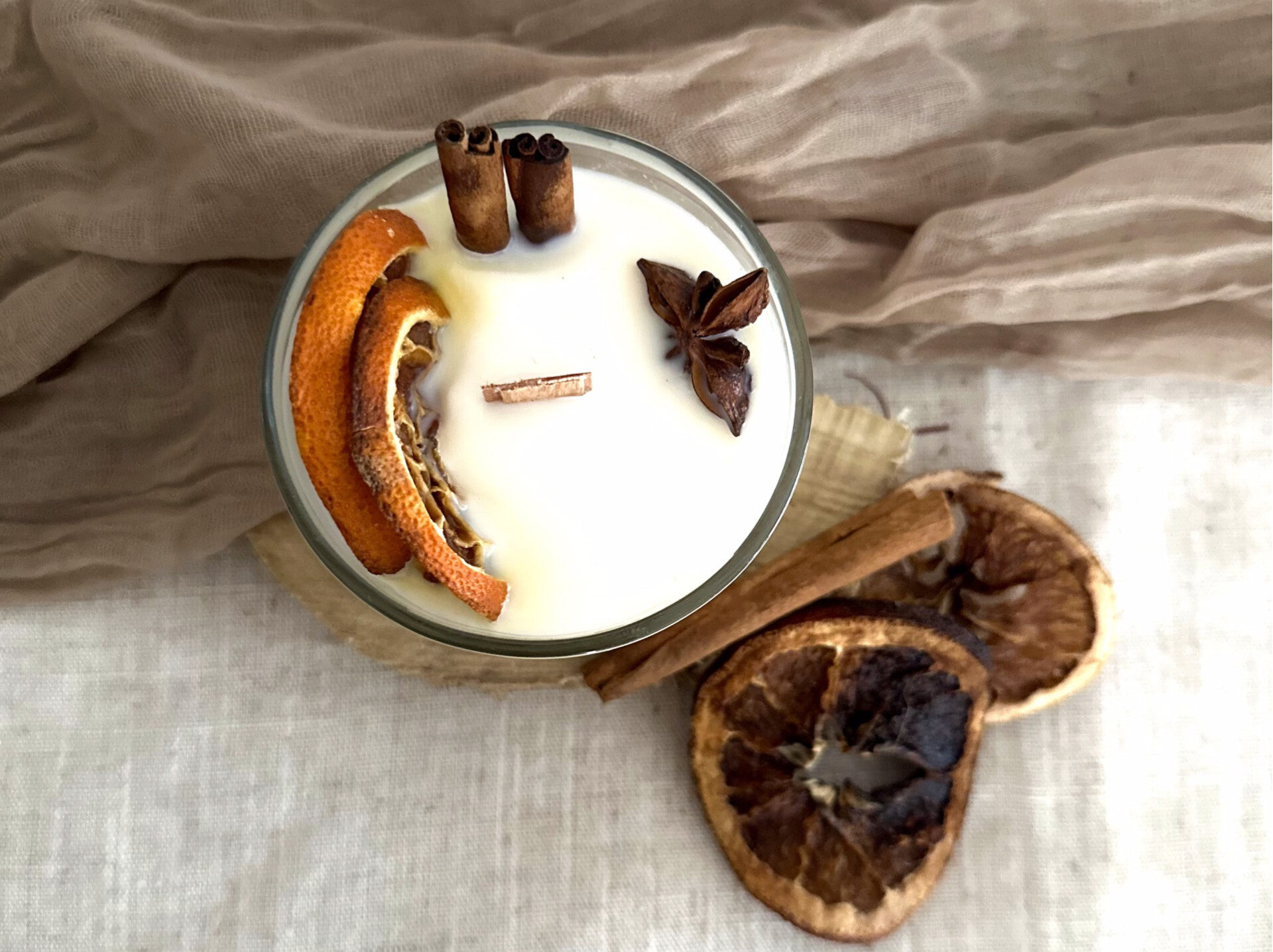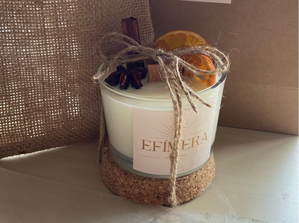 Añade calidez a tu hogar con nuestra vela artesanal en vaso de cristal, decorada con detalles elegantes. Su irresistible aroma a canela y naranja envuelve tus sentidos, creando un ambiente acogedor y perfecto para cualquier ocasión.